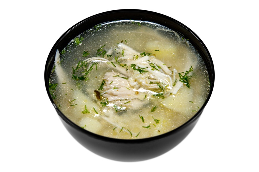 куриный бульон, филе грудки, яйцо отварное, зелень, соль, специи